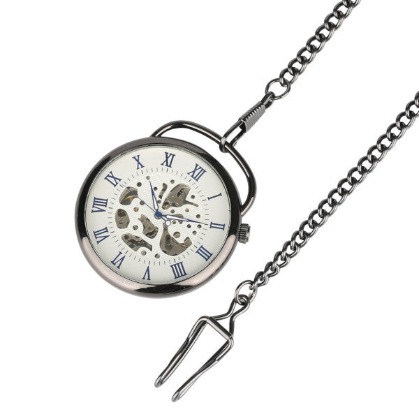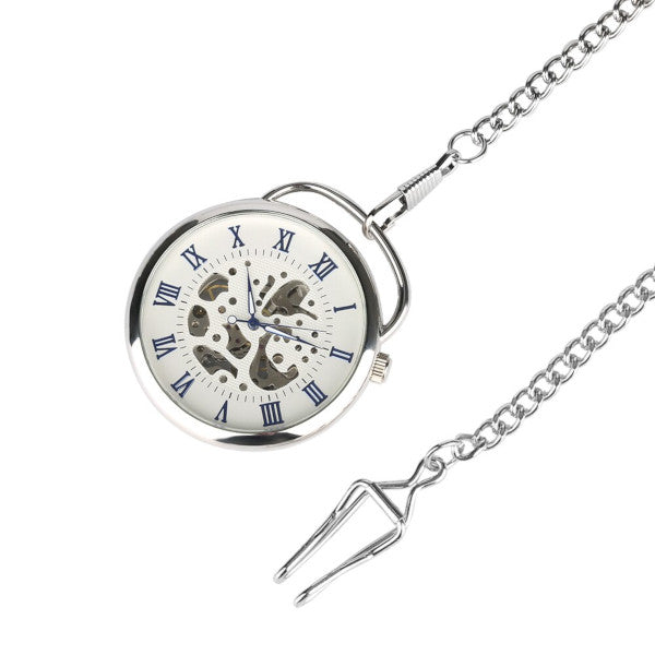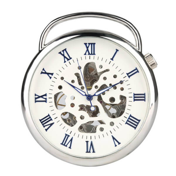 Blue Roman numerals are displayed on a white background, while in the centre and at the back you can see the mechanical movements. There is a choice of 2 colours.